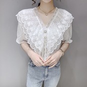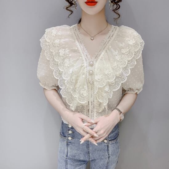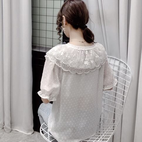 ブラウス シースルー 水玉模様 ドット 刺繍 半袖 パフスリーブ袖 フリル使い 大き目襟 新作 サマーファッション トレンディ トレンド 流行 Vネック 無地 お呼ばれ 人気デザイン バブル半袖 フレンチシャツ シャツトップ スタイリッシュ モテ お人形 ドール 乙女 スタイルアップ 着痩せ レディース おしゃれ デート 大人可愛い お出かけ 存在感 こなれ感 抜け感 女子会 普段使い デイリー使い 海外トレンド 大人気 高見え プチプラ 二次会 披露宴 発表会 飲み会 韓国デザイン オルチャン