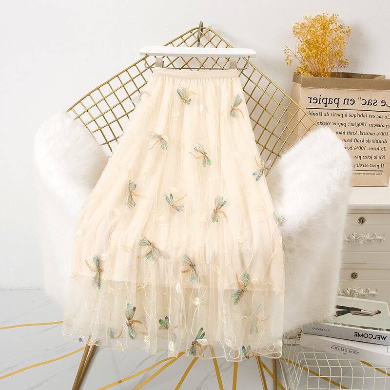 トンボ刺繍 スカート シースルー チュチュスカート メッシュスカートトンボ柄 フレアースカート レトロデザイン レディース ミドル丈 秋 新作 トレンド 人気デザイン 外国風デザイン 人気 ホットアテム 乙女 個性派 シック おススメ キュート メッシュ レーススカート ビッグスイング フェアリースカート サマー パーティー お呼ばれ 二次 発表会 可愛い 大人可愛い きれいめ おしゃれ お洒落 かわいい 大人女子 個性的 清楚 華やか 存在感 10代 20代 お出かけ リゾート インスタ映え インポート