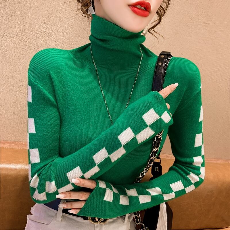 タートルネック ニット セーター タートルネック チェッカー柄 スリム フィット 細身 デザイン重視 今風 ボトミングシャツ 秋 冬オシャレスタイル 新しい チェッカーボードセーター 可愛い 大人可愛い きれいめ おしゃれ お洒落 かわいい 大人女子 個性的 清楚 華やか 存在感 主役級 S M L 10代 20代 お出かけ リゾート インスタ映え インポート オルチャン 韓国デザイン 海外ファッション インスタ 人気デザイン ホットアイテム ニュールック 暖かい 冷え性女子 ぽかぽか 外出 お出かけ