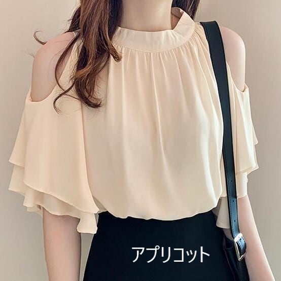 オープンショルダー 肩開き シャツ 半袖 フリル 軽い シフォン ブラウス 韓国 サマーファッション トレンディ トレンド 流行 人気デザイン 外国風 かわいい 大人きれい シンプル ふりふり 柔らかい ファッション レディース オルチャン 春 夏 無地 デート モテ 可愛い 大人可愛い きれいめ おしゃれ お洒落 かわいい 大人女子 個性的 清楚 華やか 存在感 主役級 S M L XL 10代 20代 お出かけ リゾート インスタ映え インポート ピンク アプリコット お出かけ お呼ばれ パーティー