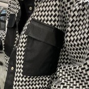 個性感のある千鳥格子とレザー、異素材MIXがお洒落なアウターです。