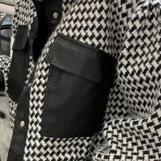 ブルゾン ジャケット 長袖 異素材MIX かわいい 大人可愛い おしゃれ お洒落 かっこいい レトロ 大人可愛い 大人女子 メンズライク ボーイッシュ キュート ガーリー 個性的 クール 主役級 存在感 千鳥格子 秋 冬 10代 20代 30代 レディース 女性用 女の子 デート お出かけ 女子会 お泊まり 休日 着回し 韓国 韓国系 ファッション コーデ スタイル 暖かい 防寒 モテ 新作 定番 送料無料 トレンド 流行 インスタ映え インポート 海外 人気 女子力 大人カジュアル 異素材 合わせやすい