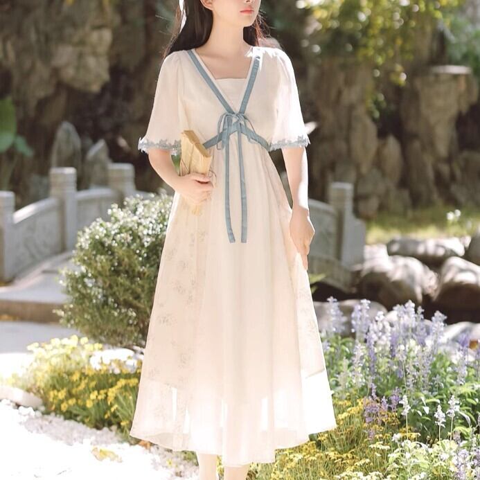 サマードレス 半袖 シフォンドレス 夏 花柄 ロング丈 ロングスカート オフホワイト リボン レディース ファッション 個性的 小悪魔 ミニ丈 チュール ワンピース グレー フレア ワンピドレス ミニ ミニ丈 袖あり パフスリーブ Vネック フレア Aライン レース リボン 透け感 シースルー かわいい 大人可愛い きれいめ 大人 上品 おしゃれ お洒落 レトロ 大人可愛い 大人女子 こなれ感 ラブリー キュート ガーリー 主役級 無地 夏 10代 20代 30代 学生 通学 デート お出かけ
