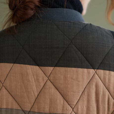 防寒性に優れたキルティング素材で作られ、トレンドのチェック柄と