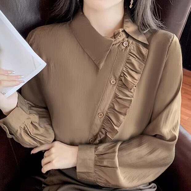 トップス 長袖ブラウス シャツ デザイン重視 スタンドアップカラー フロントボタン ブラウン ブラック 新作 女性 春物 秋物 新しい ファッション トレンディ トレンド 流行 スクエアネック 無地 お呼ばれ 人気デザイン バブル長袖 フレンチシャツ ウエストショート シャツトップ スタイリッシュ モテ お人形 ドール 乙女 スタイルアップ 着痩せ レディース おしゃれ デート 大人可愛い お出かけ 存在感 こなれ感 抜け感 女子会 普段使い デイリー使い 海外トレンド 大人気 高見え 流プチプラ